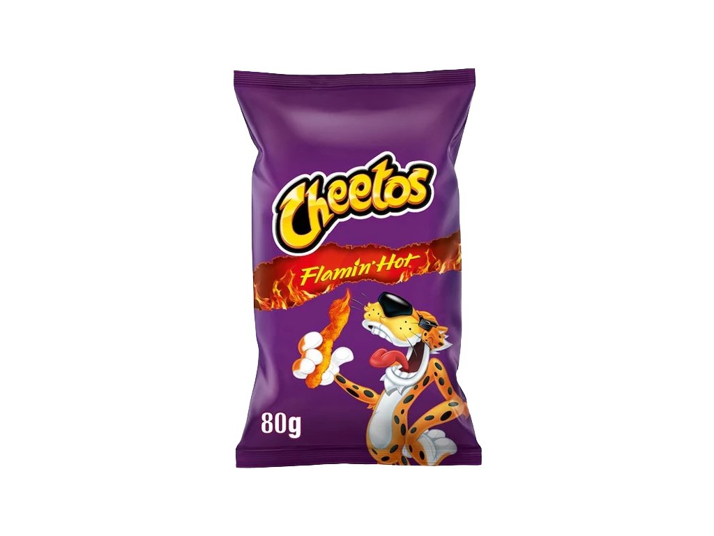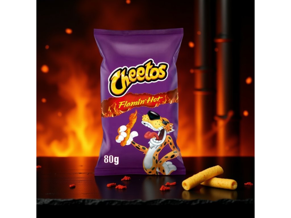 Cheetos Flamin’ Hot 80 g – Křupavé kukuřičné tyčinky s pořádnou dávkou pikantní chuti! Ohnivě červené, extra křupavé a perfektní pro všechny, kdo milují ostré snacky. Skvělá svačinka k filmu, na párty nebo jen tak na zahřátí chuťových buněk.