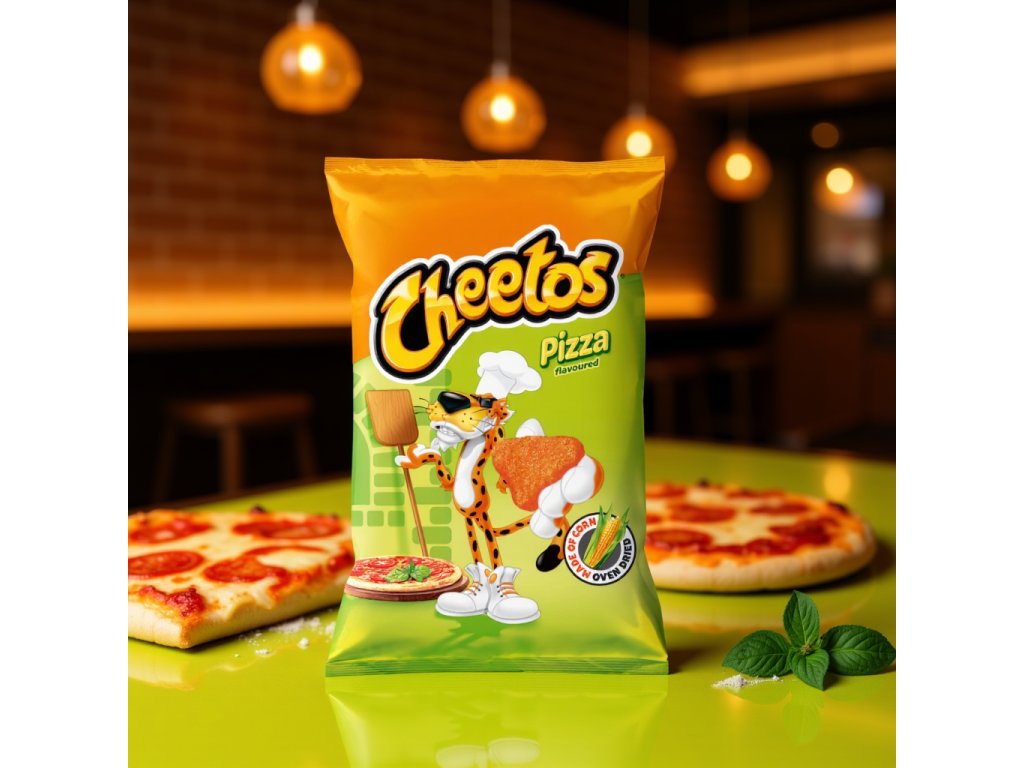 Cheetos Pizza 85g - Lahodné kukuřičné křupky s výraznou příchutí sýrové pizzy! Ideální snack pro milovníky výrazné chuti a křupavého potěšení. Užij si oblíbené Cheetos s novou pikantně-sýrovou příchutí, která tě přenese přímo do italské pizzerie. Perfektní na cesty, k filmu nebo jen tak na zahnání chuti na něco dobrého.