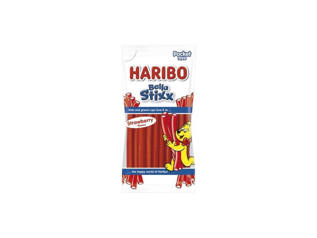 Haribo Balla Stixx jahoda (80 g) jsou měkké želé tyčinky s výraznou jahodovou příchutí — sladké, žvýkací a oblíbené jako rychlá pochoutka pro děti i dospělé.