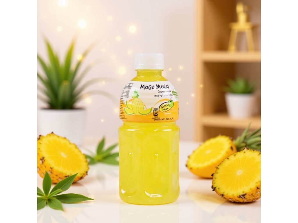 Osvěžující ananasový nápoj MOGU MOGU s kousky kokosového želé (Nata de Coco) nabízí sladkou a tropickou chuť s jedinečným žvýkacím zážitkem. Ideální na cesty, párty nebo jen tak pro osvěžení během dne.